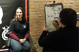 In between sets, Natty gets her caricature done.