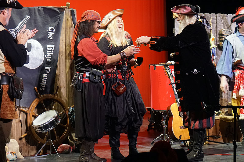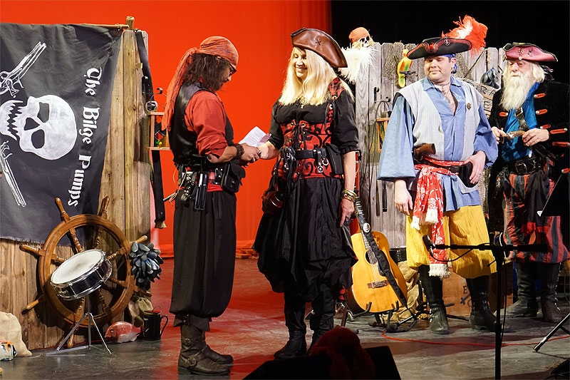 After 2 sets of great music from the opening acts, the Bilge Pumps came on and added our own batch of irreverence to the proceedings and ended our own set with our tribute to Bowie and with our own Jack the Rum Runner proposing to his better half, Elizabeth the Stowaway!