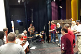 All three bands get together and do a super-fast rehearsal of the final set.