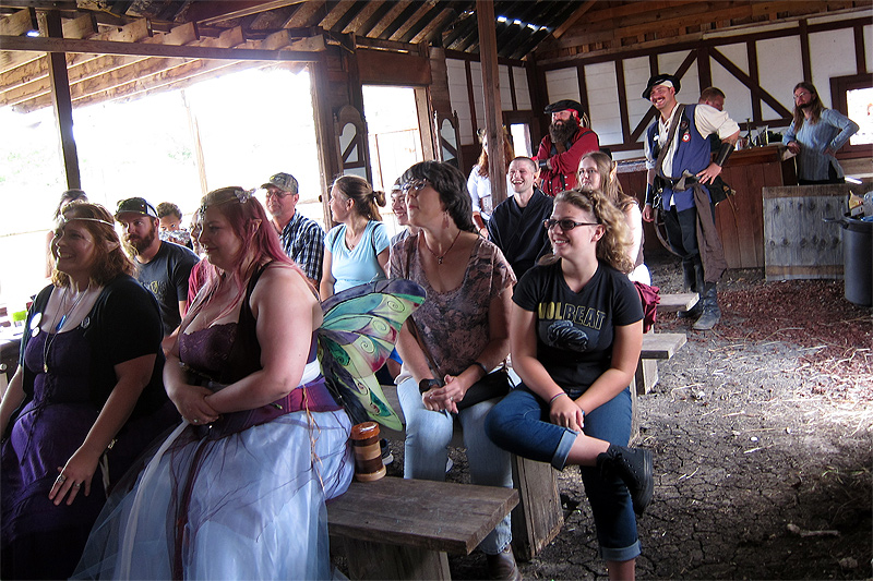 The audience in the Jack Tar Tavern seems to get a kick out of "The Farmer".