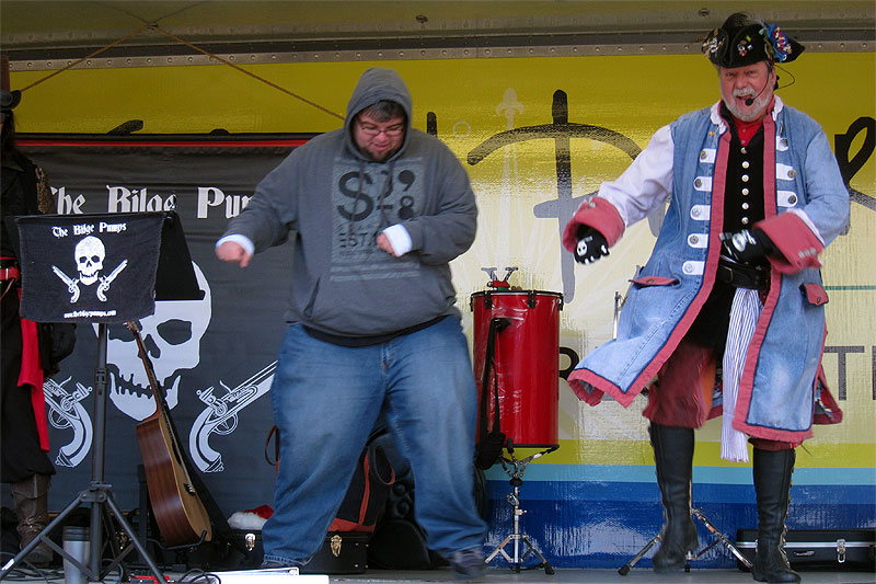 The Bilge Pumps rolled back into the Farmer's Market in their home of Grand Prairie, not in the hopes of sailing home with a ship full of stolen carrots, but to spread the Christmas-y love of pirates to the plains.They also pulled one of the rarest of rarities in the band's history, putting on a show without Maroon the Shantyman.