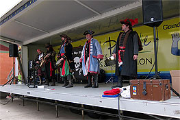 | The band performs their original pirate Christmas song |